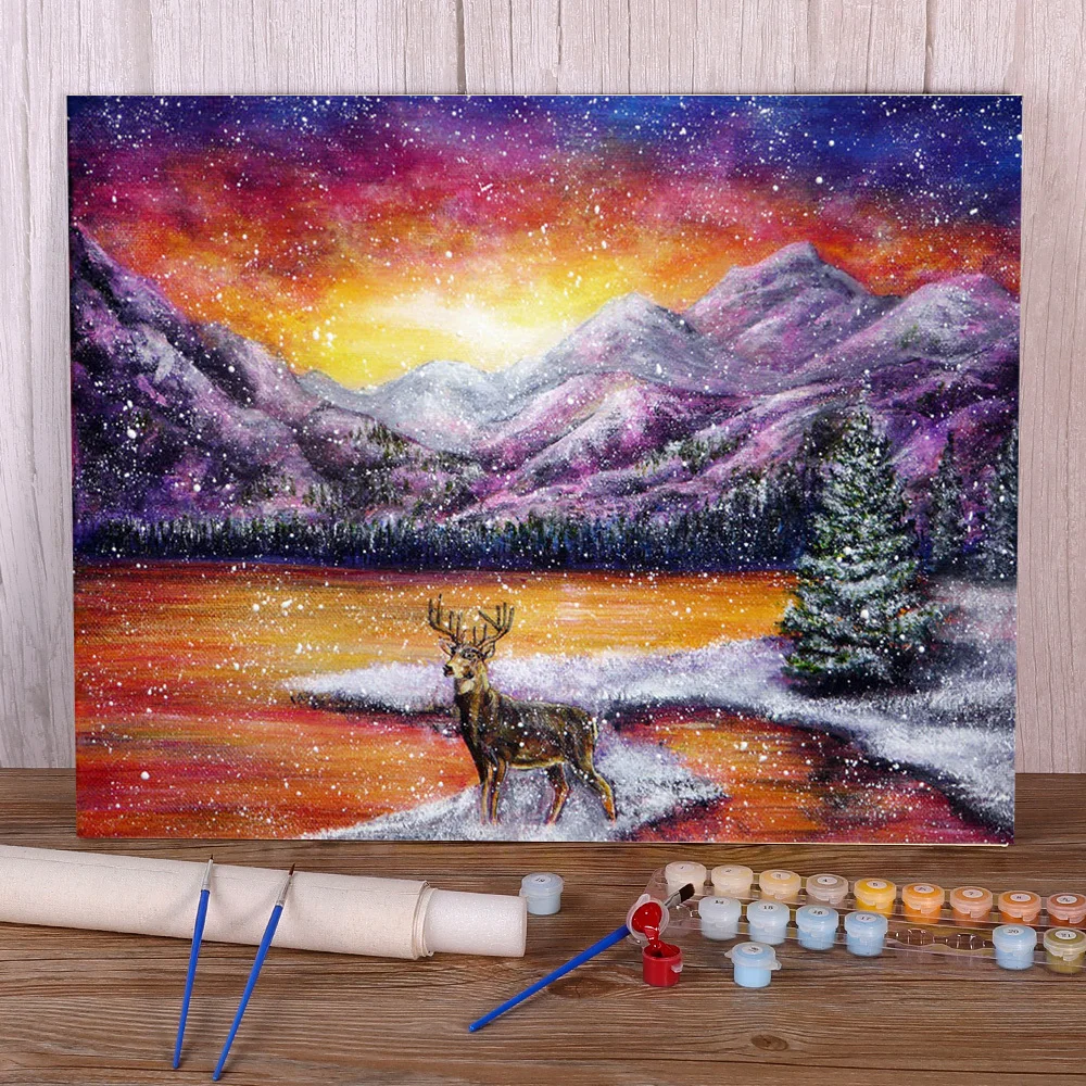 Natural Scenery Sunset Snow Diy Paint By Numbers Package Acrylic Paints 50 70 Canvas Painting Home Decoration Kids Handiwork Paint By Number Aliexpress